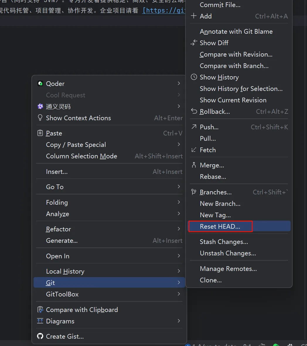 ^代表回退一次commit,^^代表回退两次commit