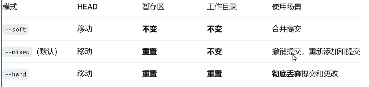 - 不小心把一个不需要add的文件给add了,此时使用reset。(建议使用Mixed模式:保留工作目录的代码)
