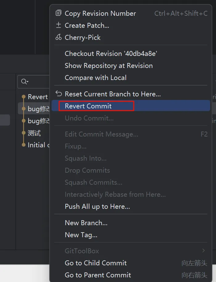 选中要撤回的提交记录,执行Revert Commit,(执行后,工作目录的这次提交内容会消失)